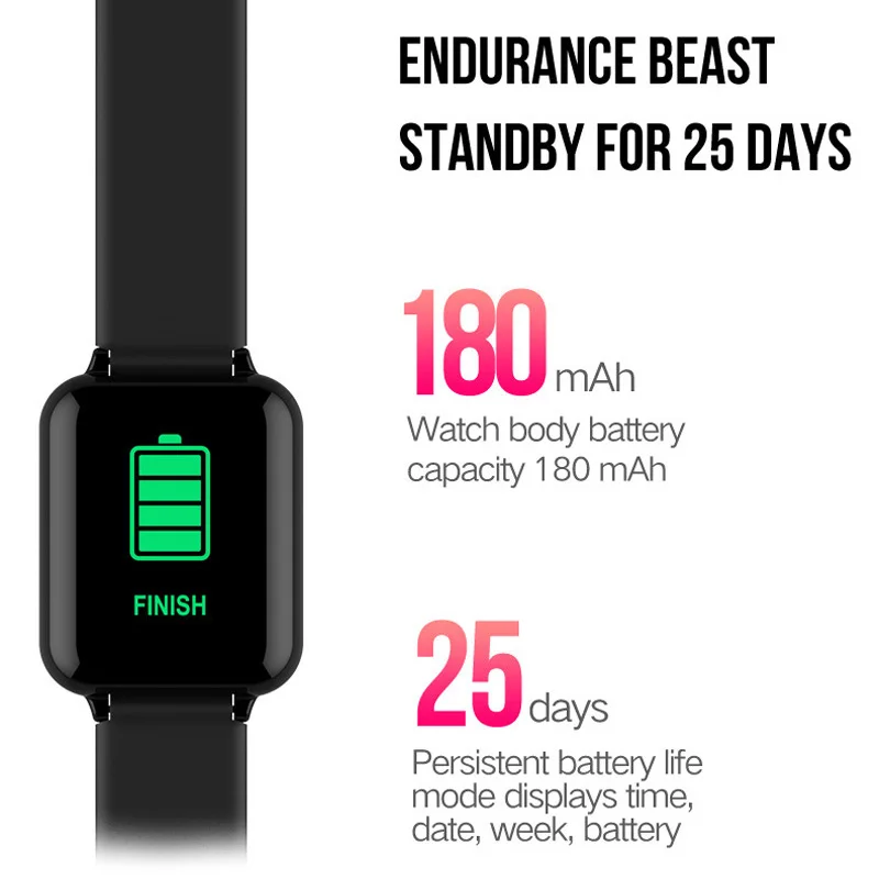 HOT Sale Color Screen Smart Watch Heart Rate Blood Pressure Oximeter Step Motion Call Reminder Waterproof Bl