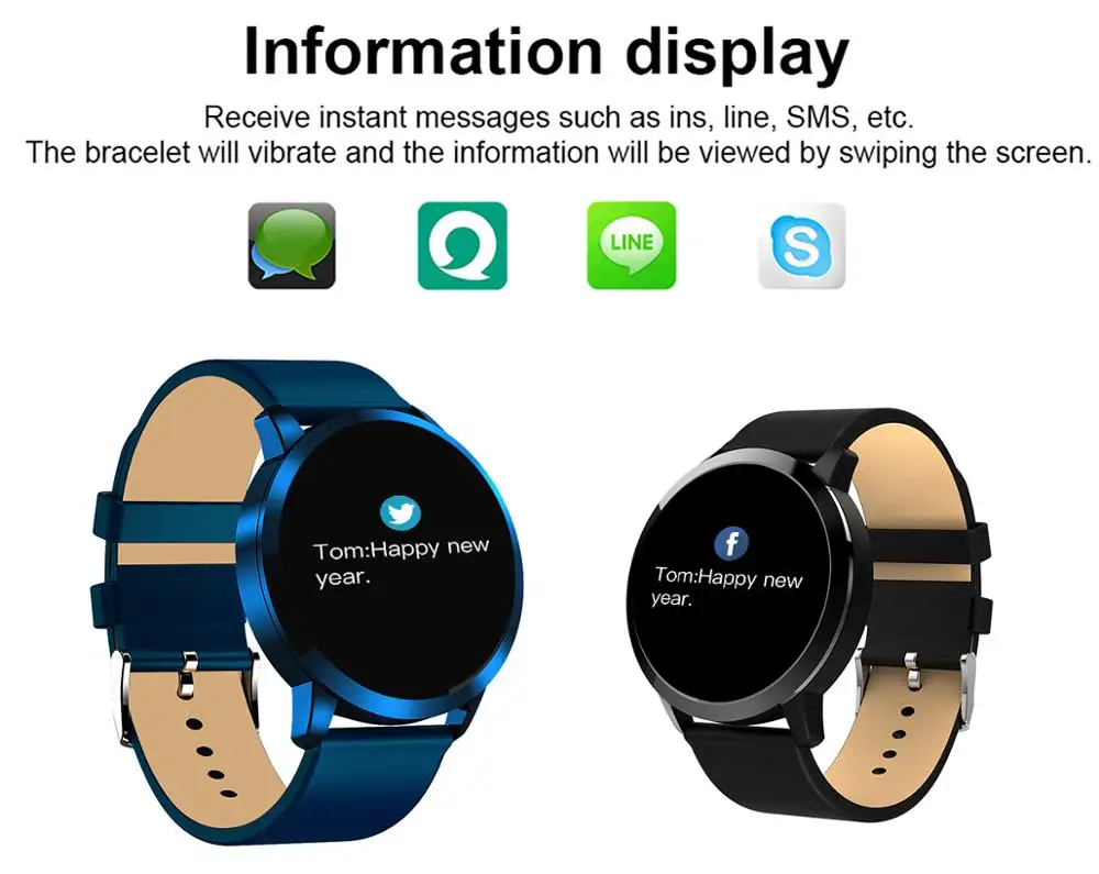 Q8 Busines Men Women Smart Watch With Blood Pressure Measurement Heart Rate Monitor Pedometer Sleep